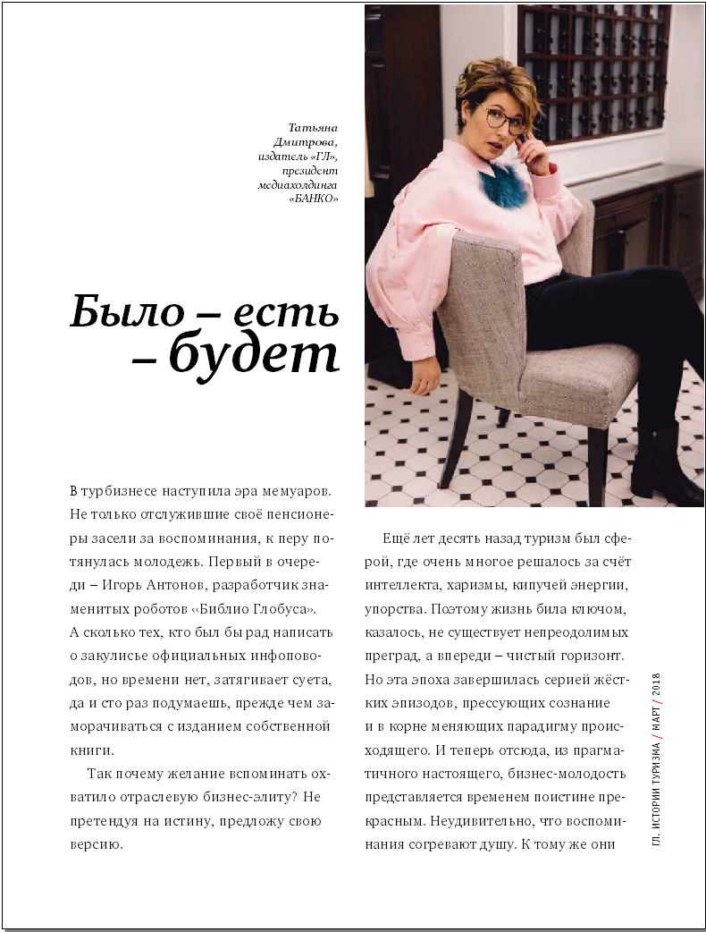 Краткое саммари журнала, который в листалке вверху над этим блоком У юбилейного выпуска новый формат – TourismStory. Теперь издание представляет собой 100 полос увлекательных материалов об истории турбизнеса, описывающих поворотные события для отрасли. Многие фотографии, все эти годы хранившиеся у специалистов рынка, опубликованы впервые.
